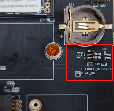 2. 连接完成后,将设备上的 SW1 拨码开关的第 1 位拨至 ON,使设备进入 Recovery 模式。